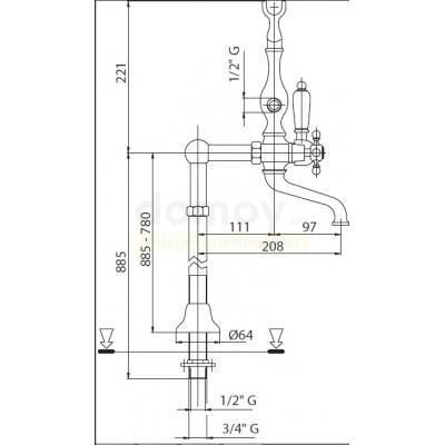 Смеситель на борт ванны Cezares Diamond PBV с лейкой, Swarovski, золото