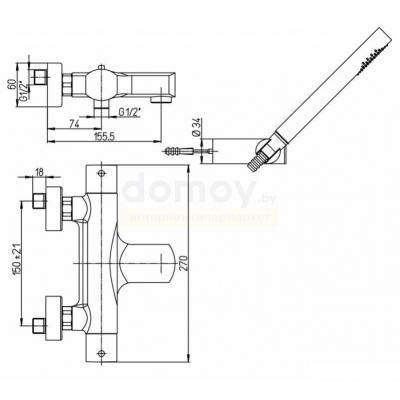 Термостатический смеситель для ванны Paini Ovo, настенный, с лейкой, никель 86PW105TH. Исполнение-хром. Регулируемое крепление лейки. Керамические кран-буксы с углом поворота 90 градусов. Изображение и цвет на мониторе могут отличаться от оригинала.