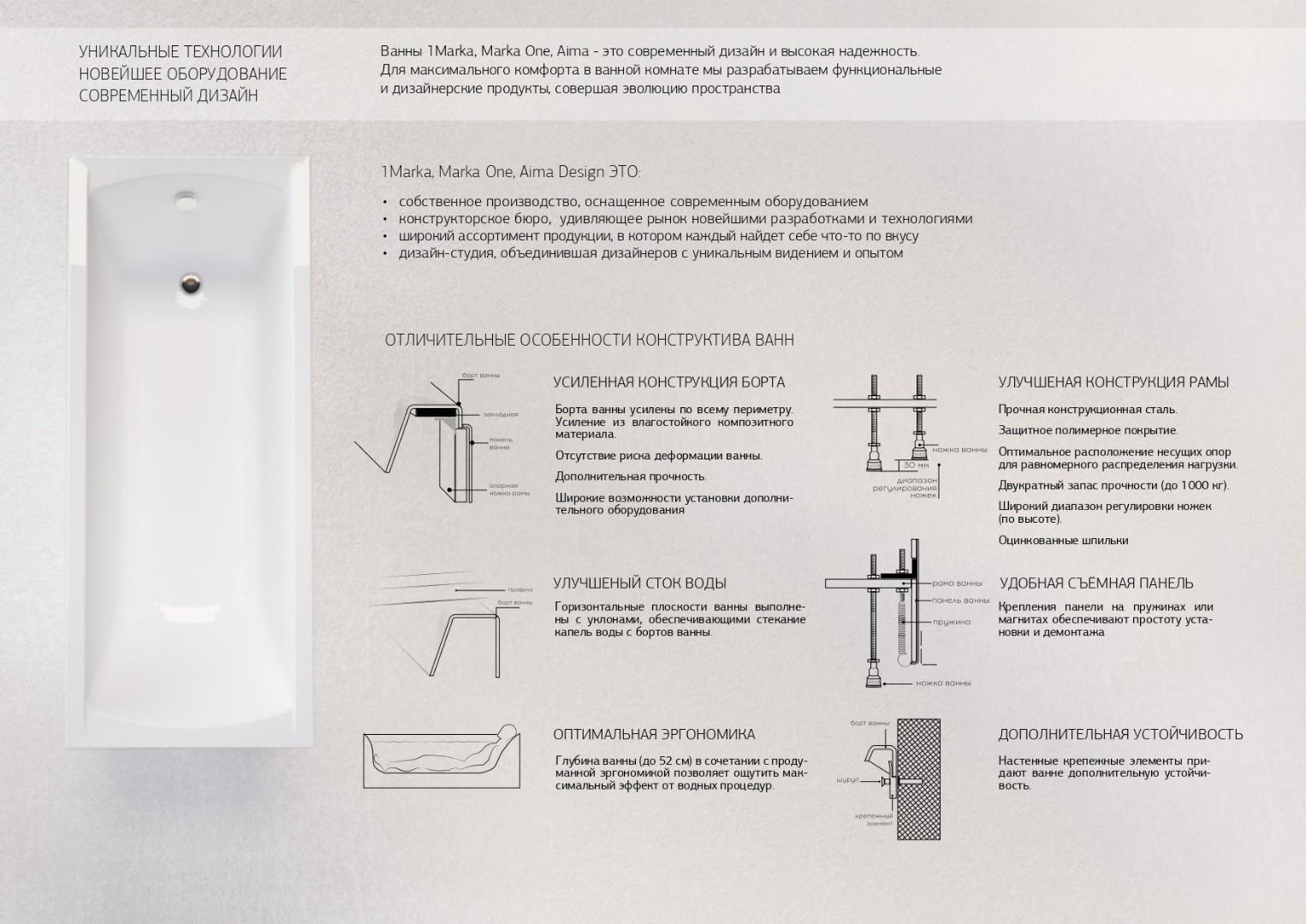 Компания 1Marka - ведущий производитель акриловых ванн в России. Изделия изготавливают на американском формовочном оборудовании по собственным разработкам. Акрил производят своими силами из японского сырья без примесей пластика. Производитель уделяет особое внимание качеству своей продукции, не уступающему высоким стандартам мировых брендов.