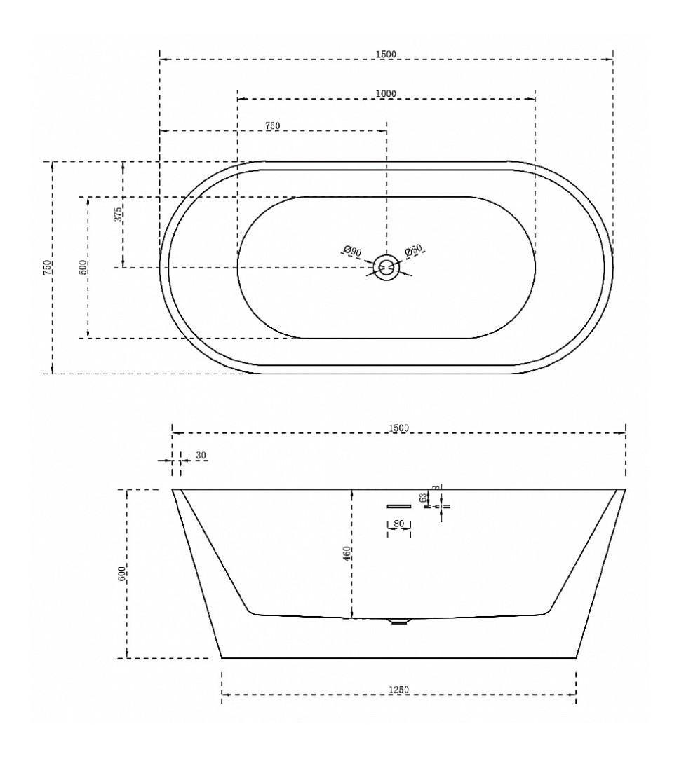Акриловая ванна ABBER AB9320-1.5 150x75