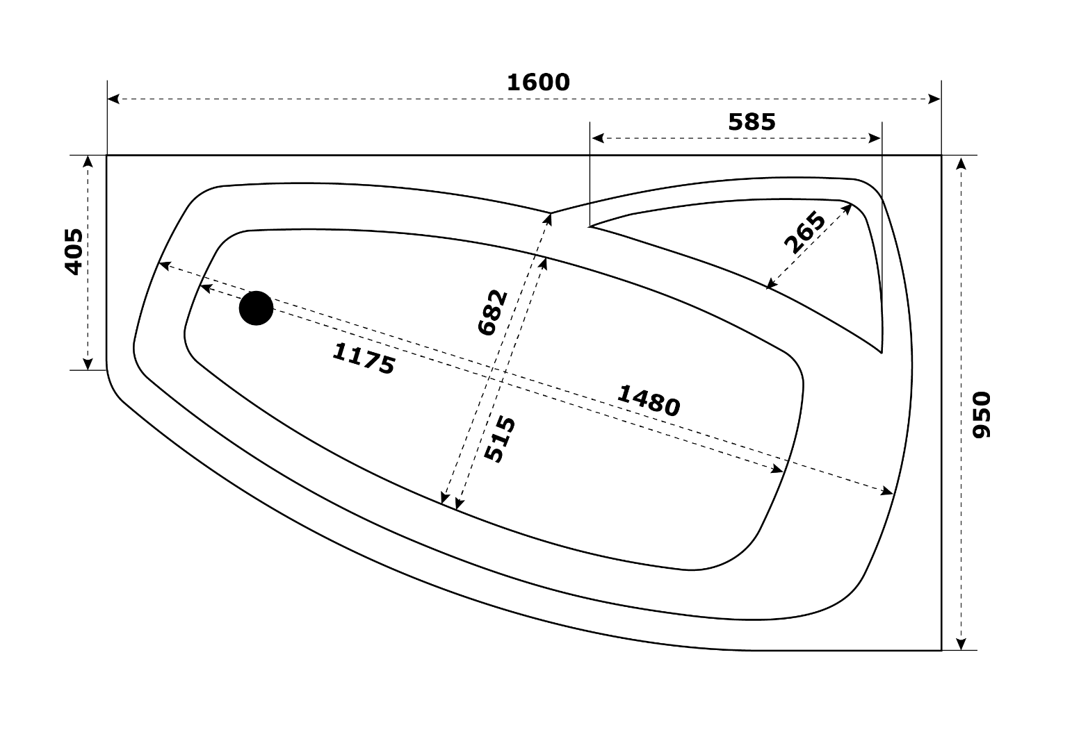 Акриловая асимметричная ванна в комплекте с каркасом. Экран и слив-перелив не входят в комплект и заказываются отдельно.