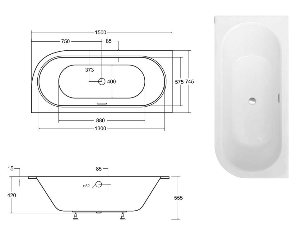 Акриловая ванна Besco Avita Slim+ L 150х75