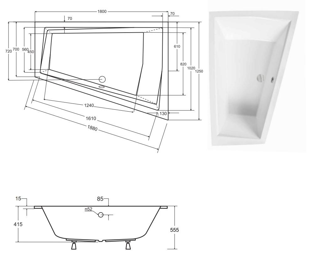 Акриловая ванна Besco Intima Duo Slim R 180х125