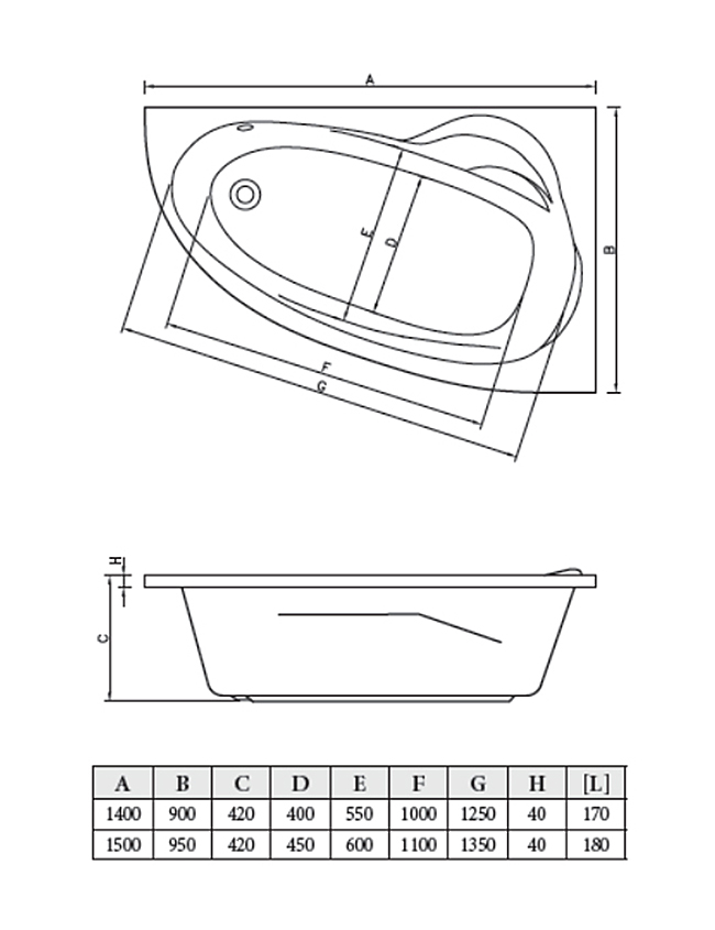 Акриловая ванна Bonito Home Emilia 150x95 L, с ножками