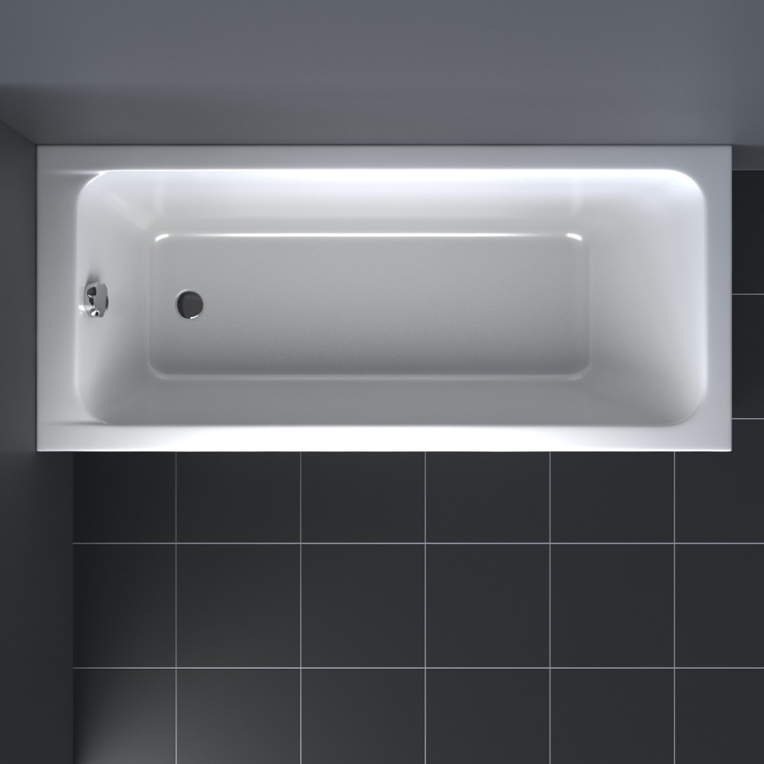 Ванна акриловая 170х75 см, встраиваемая, с 1 наклоном для спины, выпуск в зоне ног, цвет белый.