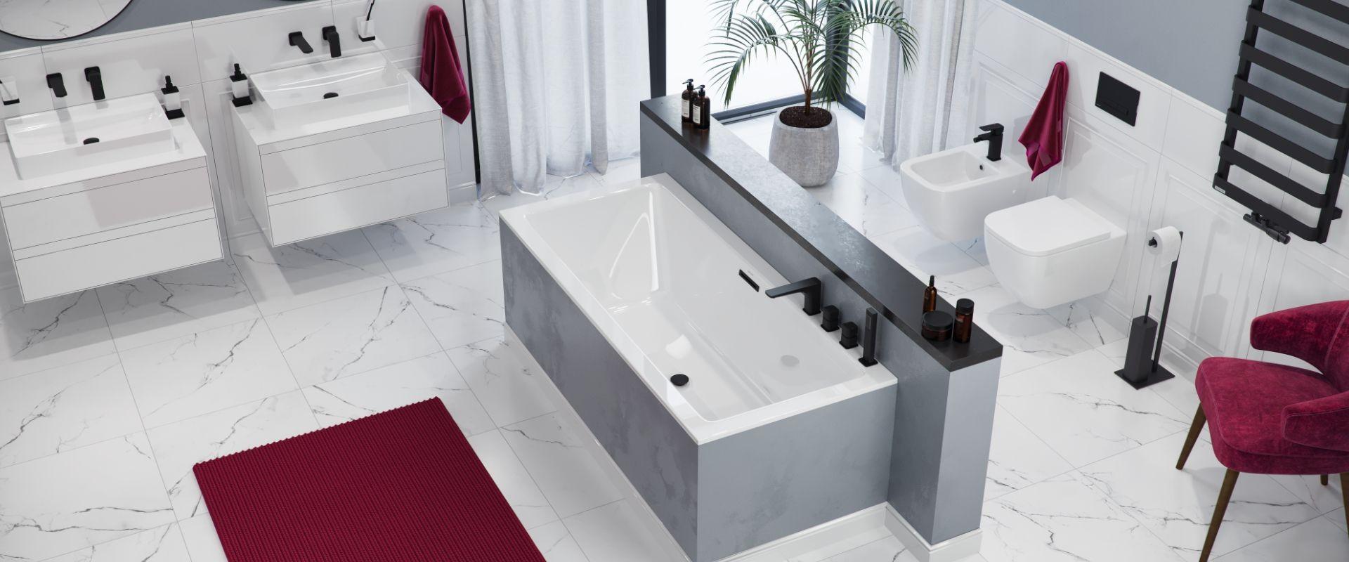 Ножки для ванны, фронтальная и боковая панели, сифон (чёрный, белый или хром) приобретаются отдельно.