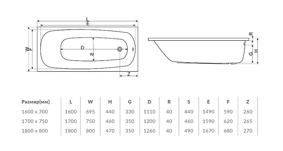 Ножки для ванны, фронтальная и боковая панели, сифон приобретаются отдельно.
