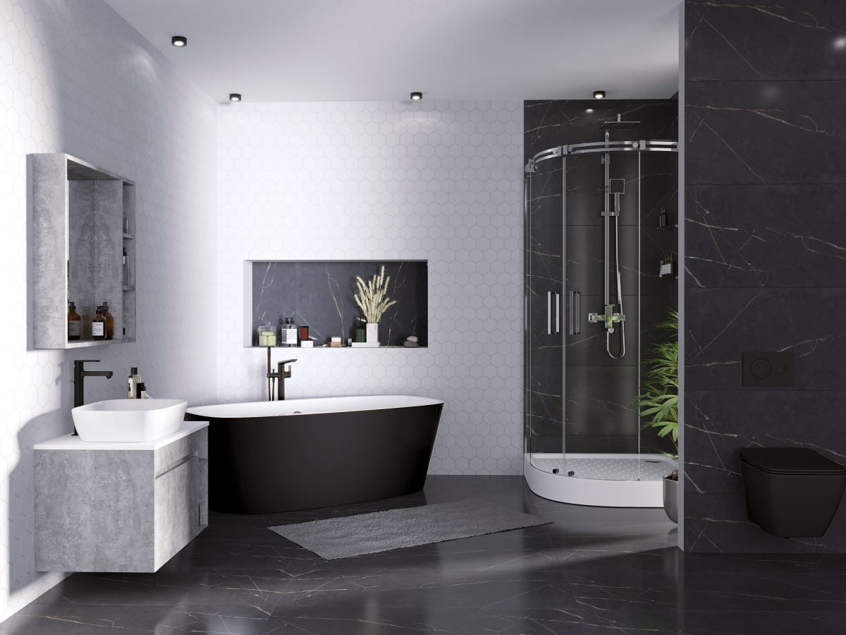 Ванна отдельностоящая Grossman GR-2701B чёрная. Изготовлена из 100% акрила, чаша установлена на железном каркасе с регулируемыми ножками.