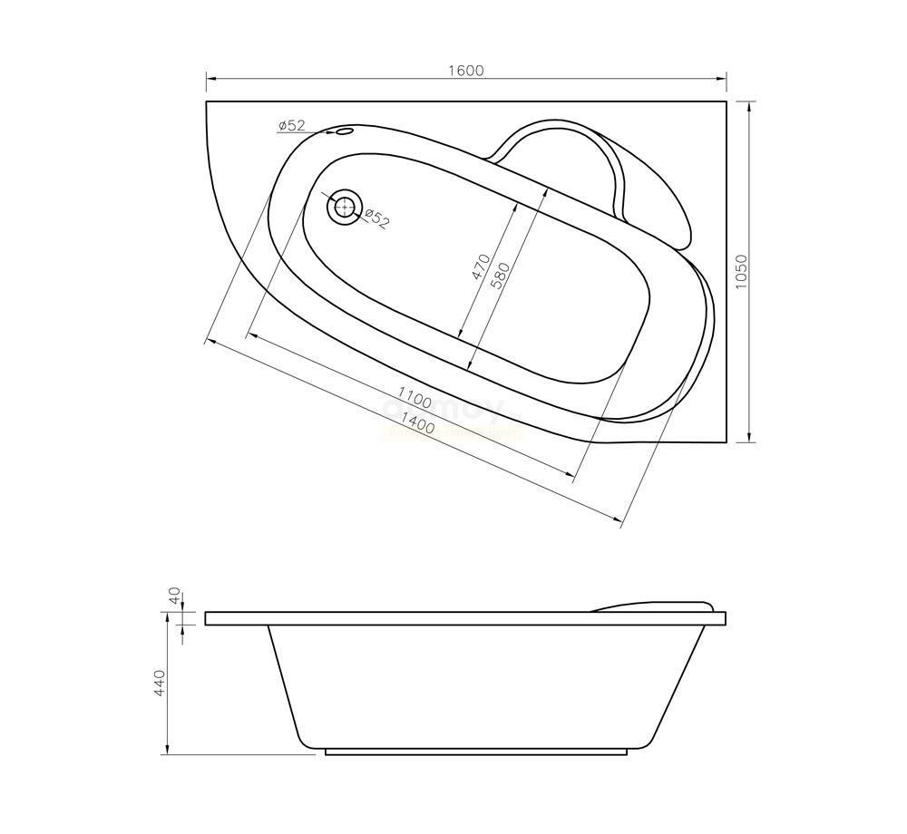 Акриловая ванна Lavinia Boho Bell Pro 370216PR 160х105 R с подголовником