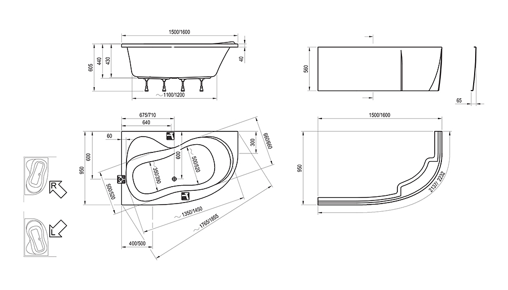 - Дополнения к покупке: опорная конструкция, передняя панель, сточный комплект для ванны.