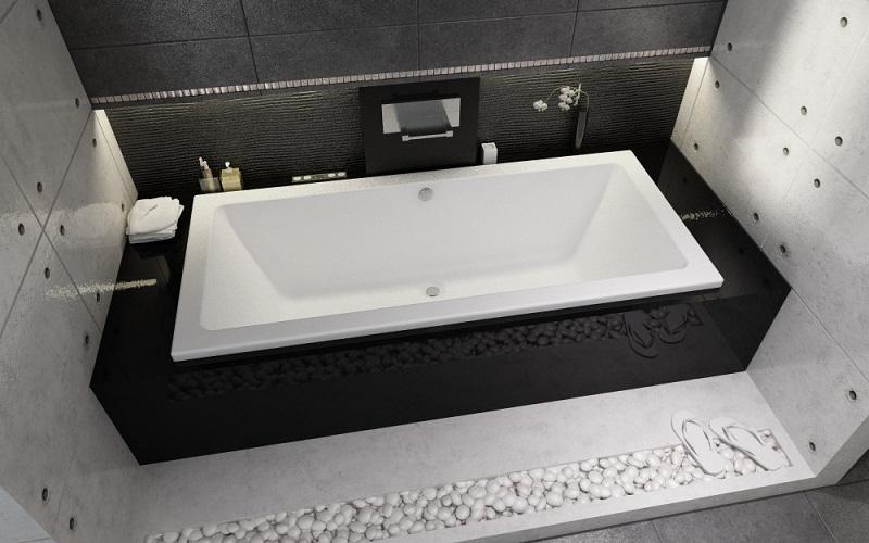 Дно широкое и почти полностью плоское, что позволяет удобно стоять в этой ванне.