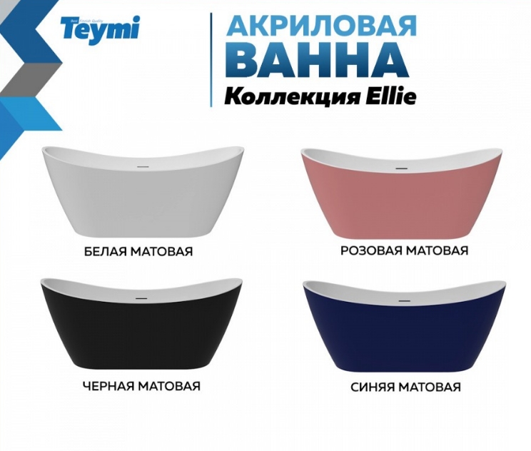 Акриловая ванна Teymi Ellie 170x80x73, синяя матовая T130116