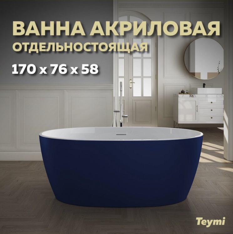 Акриловая ванна Teymi Lina 170x76x58, синяя матовая T130102