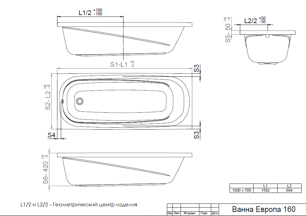 Для облегчения монтажа ванны в ограниченном пространстве ванной комнаты и в соответствии с ТУ, размеры изделия могут отличаться по габаритной длине: -1%+0,2%, по габаритной ширине: -2%+0,2%.