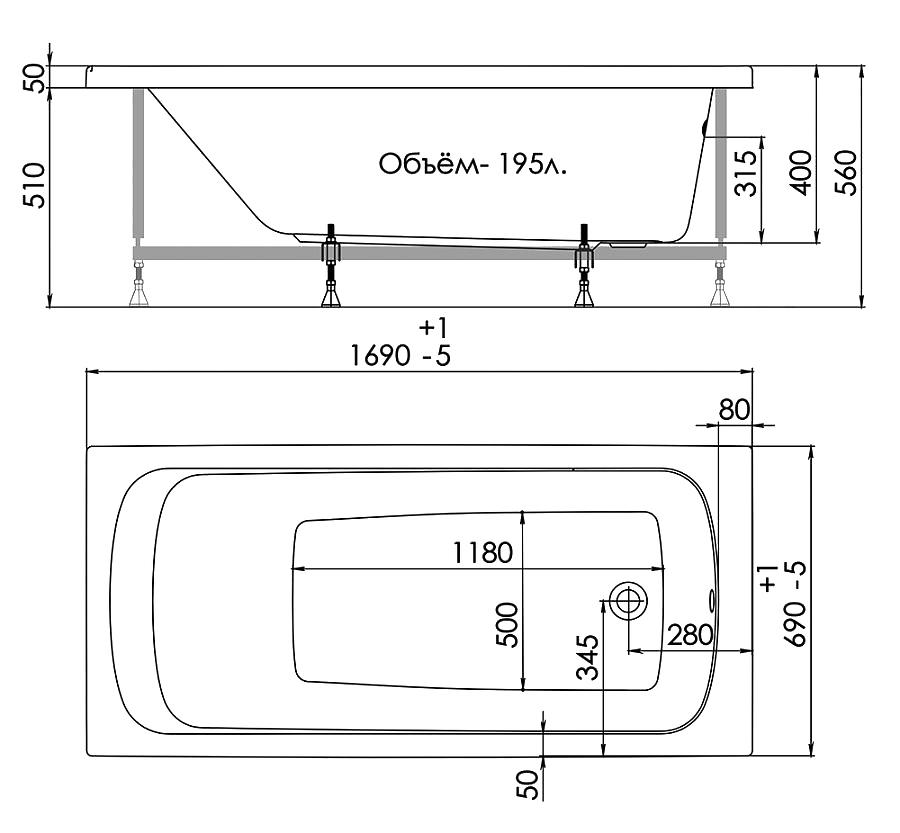 - армированное дно ванны для дополнительной прочности и надёжности эксплуатации;