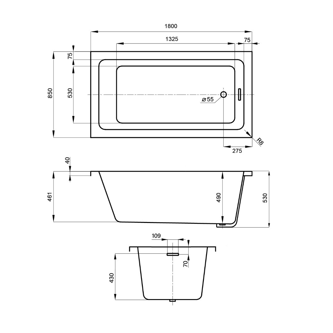 - встраиваемая ванна из экструдированного акрила ExtrudedPMMA, арт. 233003000 (размер 180*85 см, цвет глянцевый белый);