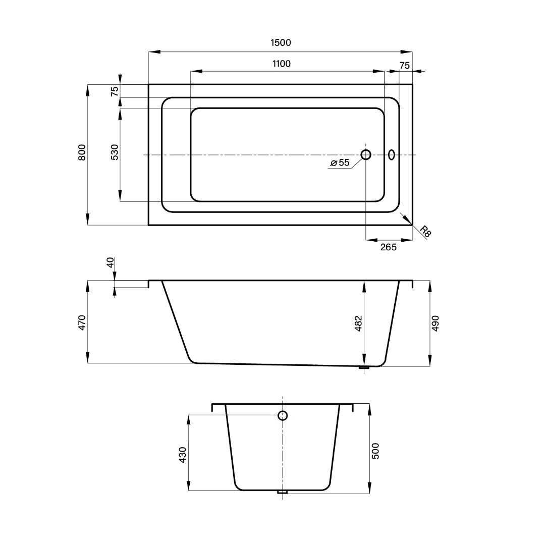 - встраиваемая ванна из экструдированного акрила ExtrudedPMMA, арт. 231101000 (размер 150*80 см, цвет глянцевый белый);