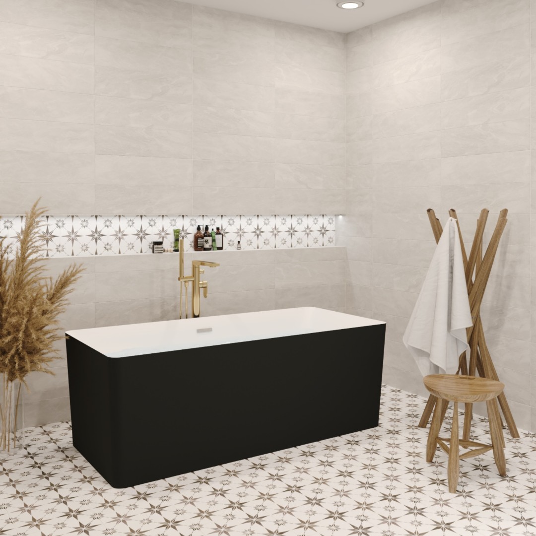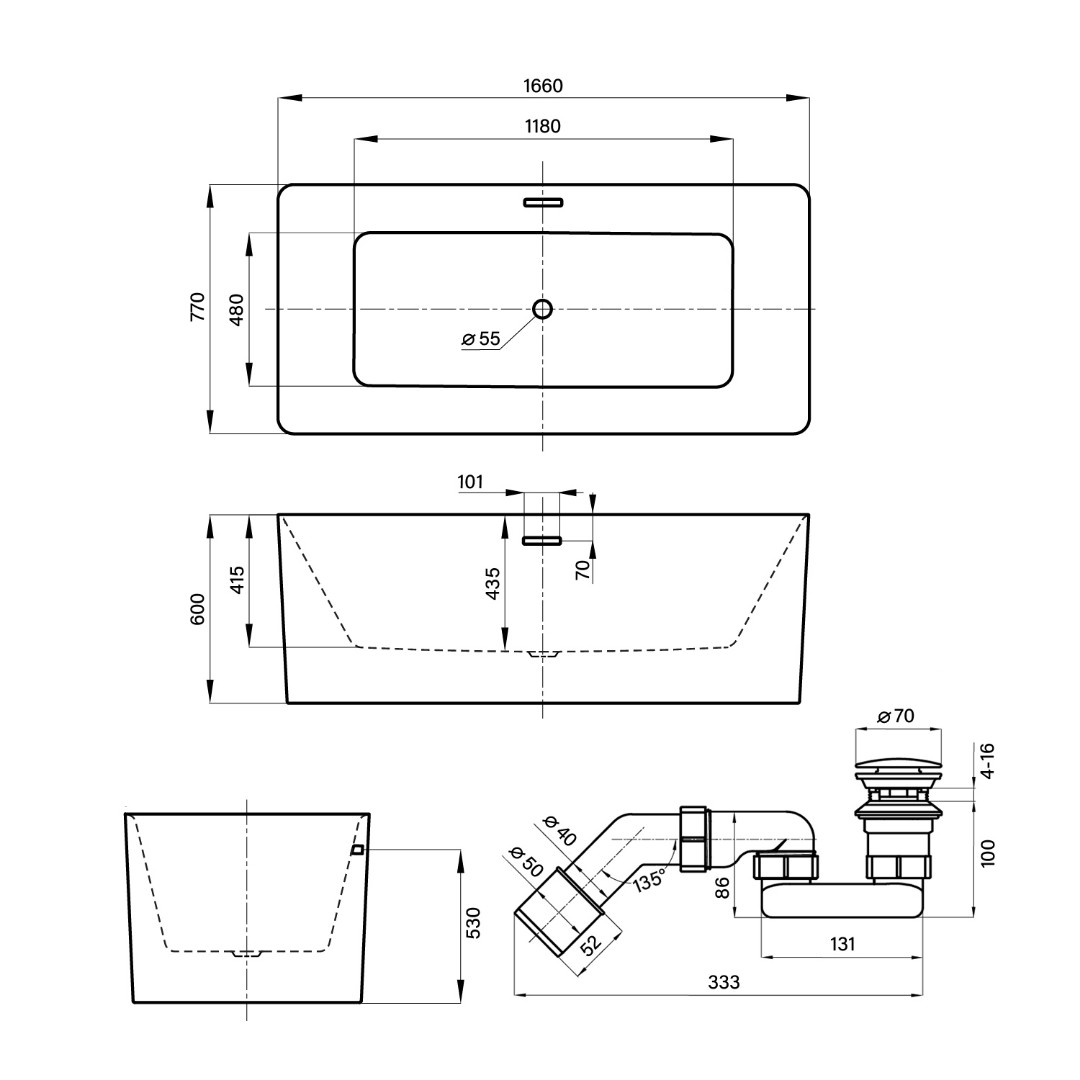 В комплекте: Акриловая ванна в наборе 4 в 1 Wellsee Pure BY Wellsee: 1 x отдельностоящая ванна из литьевого акрила CastAcryl, арт. 230703000 (размер 166*77 см, цвет матовый черный/глянцевый белый); несъемный экран, встроенные ножки; 1 x комплект включает сифон с возможностью верхней прочистки, донный клапан click-clack и фирменную металлическую накладку на перелив, арт. 231916000 (цвет хром); 1 x инструкция по монтажу и эксплуатации; 1 x гарантийный талон.
