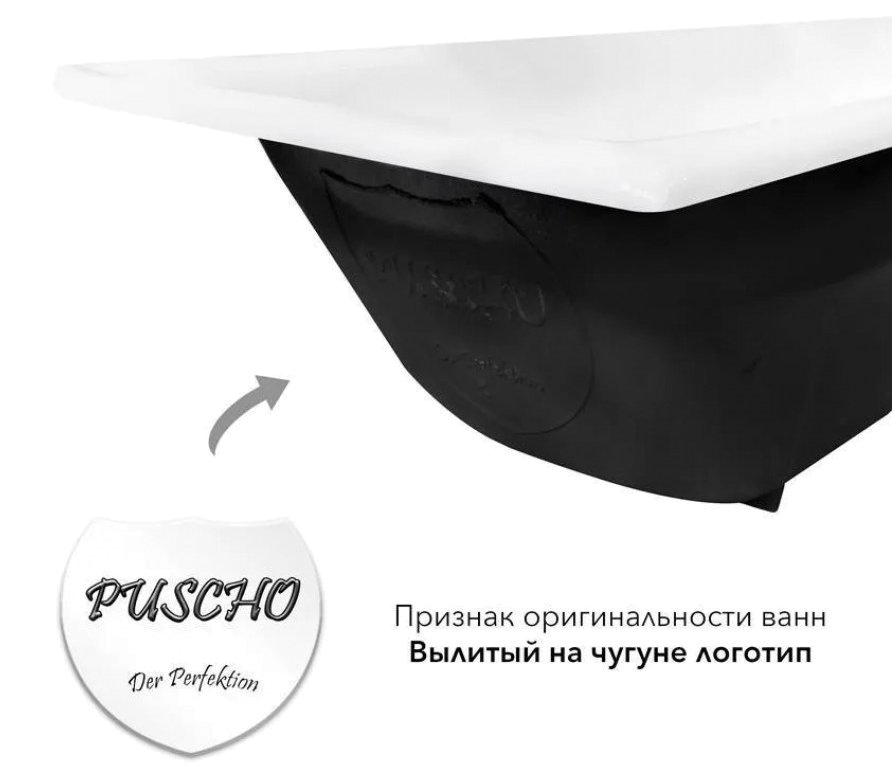 Немецкие чугунные ванны PUCSHO производятся из высокопрочного чугуна, без вредных примесей и добавок. Технология вакуумной отливки позволяет получать плотные, идеально ровные и качественные изделия. Не менее четырёх слоёв титановой эмали класса "А+" защищают ванну от сколов и загрязнений. Все ванны данного производителя комплектуются качественными и надёжными ножками для крепления с прочными подъёмными болтами для регулирования по уровню относительно пола.
