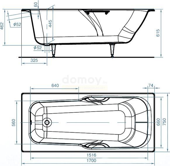 Чугунная ванна Универсал Эврика с ручками 170x75