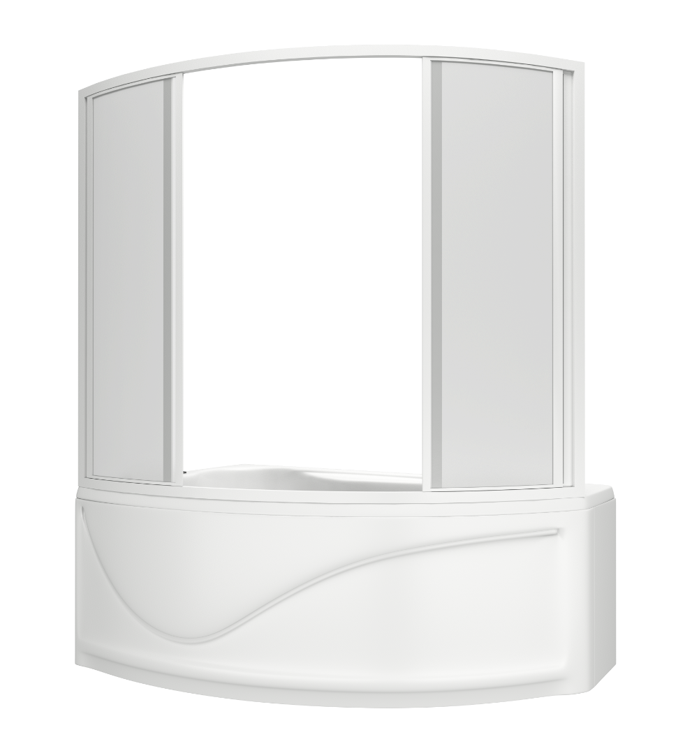 Шторка на ванну BAS Николь 170x104x145, пластик, из полистирола, раздвижная, четырёхсекционная, с двумя подвижными створками.