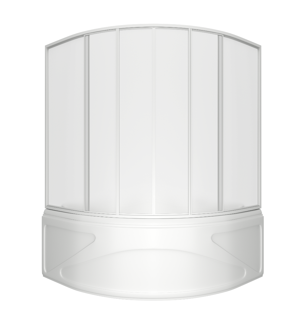 Шторка на ванну BAS Риола 135x135x145, пластик, из полистирола, раздвижная, шестисекционная, с четырьмя подвижными створками.