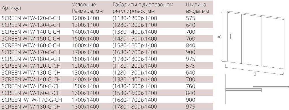 Шторка для ванны Good Door SCREEN WTW-160-C-CH