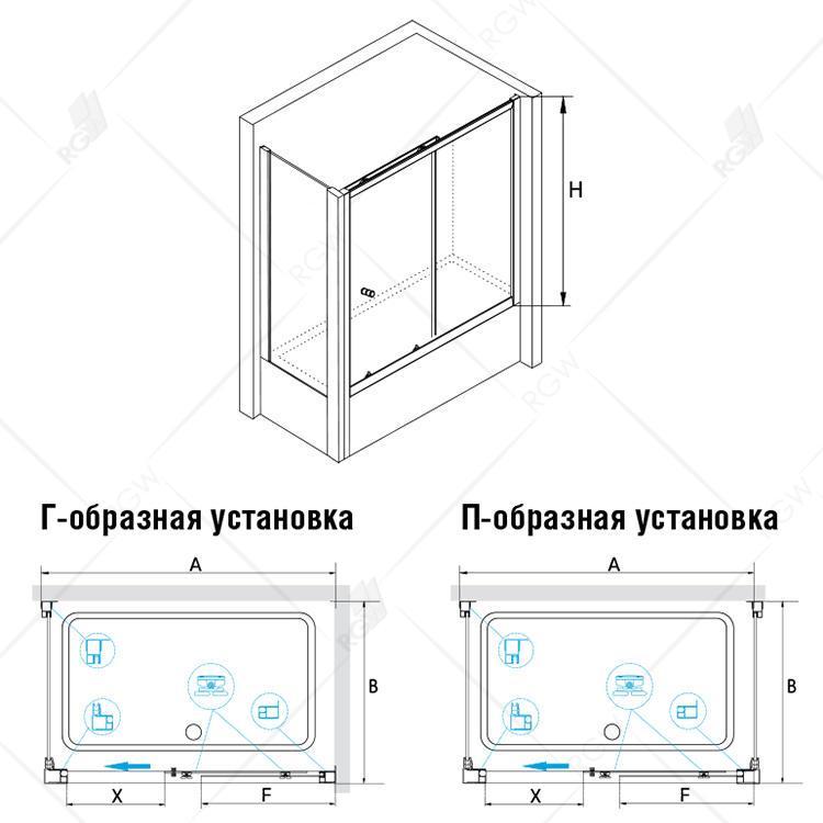 Душевая шторка для ванны RGW SC-82 (SC-42+Z-52) 160х70х150 стекло прозрачное