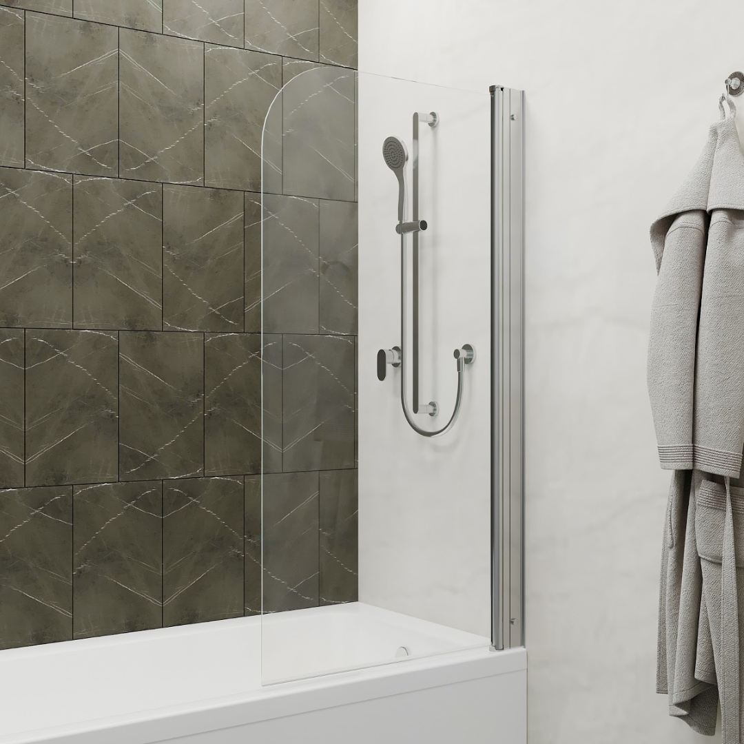 Стекло калёное, безопасное, прозрачное (4 мм). Хромированный профиль. Подъёмная поворотная петля.