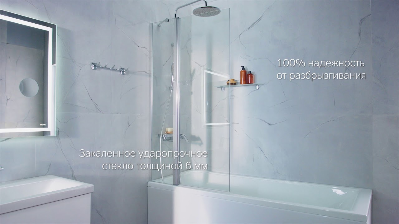 Поворотная конструкция с неподвижной стенкой может менять свое положение. Устанавливается на любые ванны бренда.