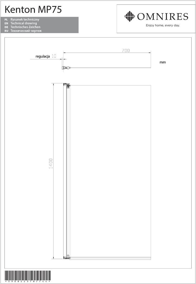 Душевая шторка на ванну Omnires Kenton MP75 - отличное решение для защиты ванной комнаты от разбрызгивания воды во время принятия душа. Шторка выполнена из безопасного калёного стекла 4 мм.