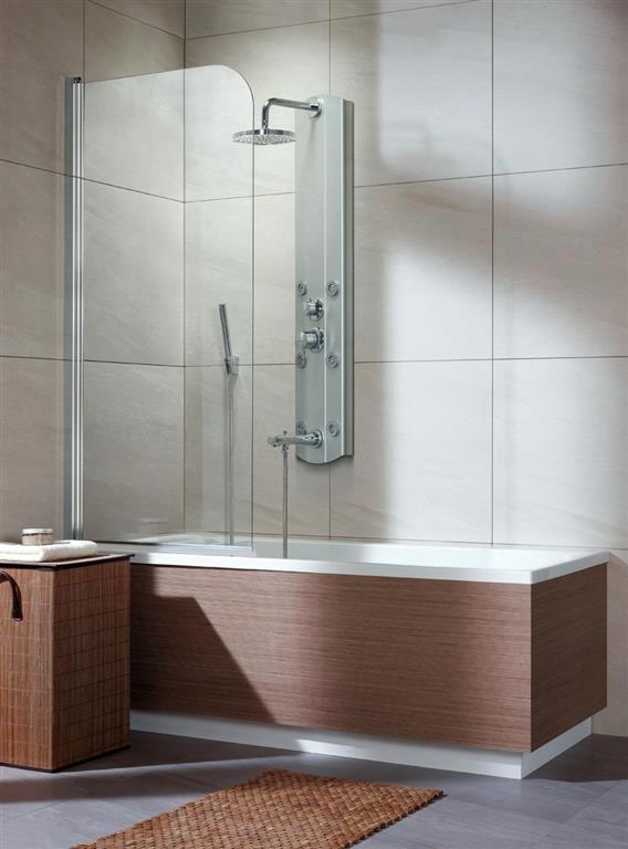 Одностворчатая шторка для установки на ванну. Поворачивается внутрь и наружу.