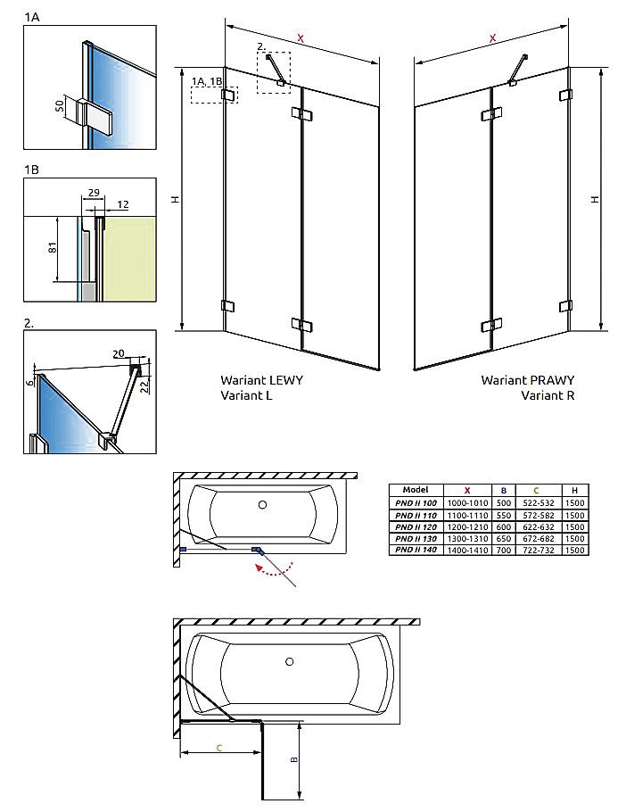 - Безопасное закалённое стекло толщиной 8 мм, согласно стандарту PN:EN 12150:1.