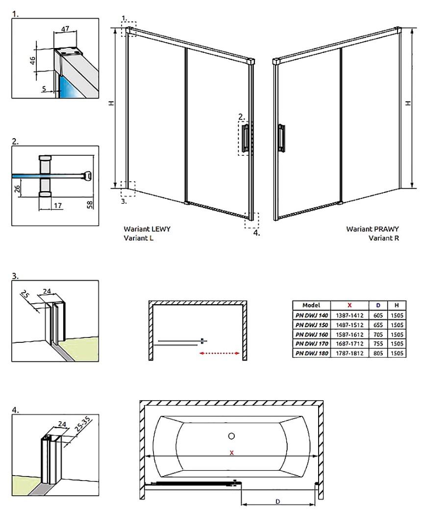 Модель Idea Black PN DWJ - это фронтальная душевая шторка на ванну с одной сдвижной дверью и одной неподвижной стенкой. Возможна правосторонняя и левосторонняя установка.