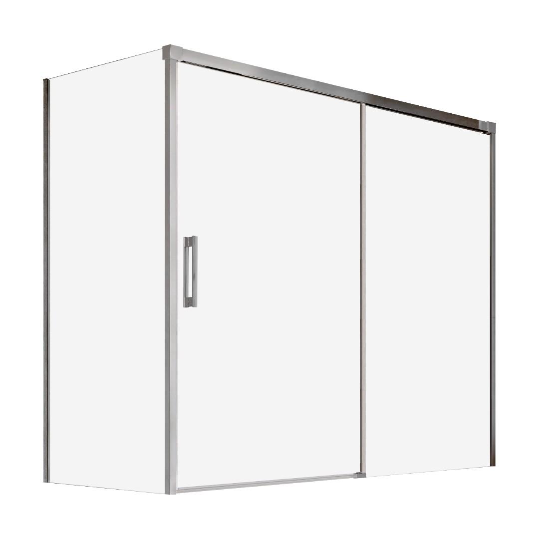 Фронтальная душевая шторка на ванну с одной сдвижной дверью и одной неподвижной стенкой. Дополнительно укомплектована боковой стенкой для получения Г-образной формы. Возможна правосторонняя и левосторонняя установка.