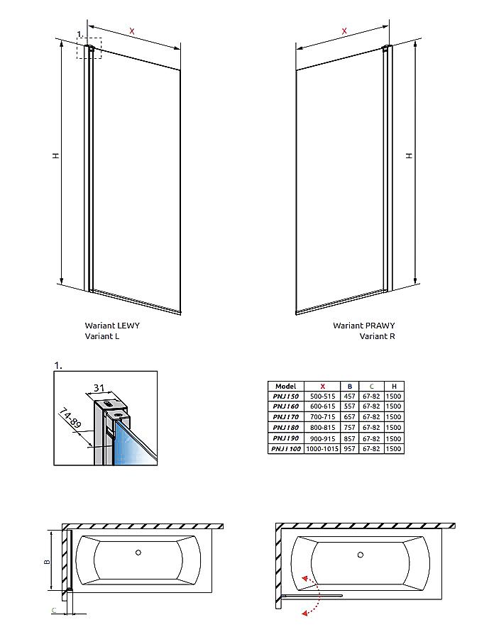 Шторка для ванны Radaway Nes PNJ I 100 R
