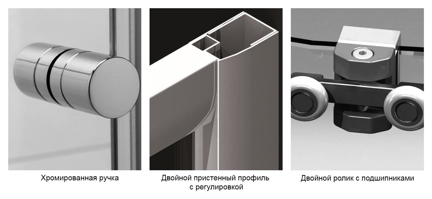 - Подлежит модификациям (нестандартные размеры, цвет стекла, гравировка, держатель для полотенец, расширительные профили).