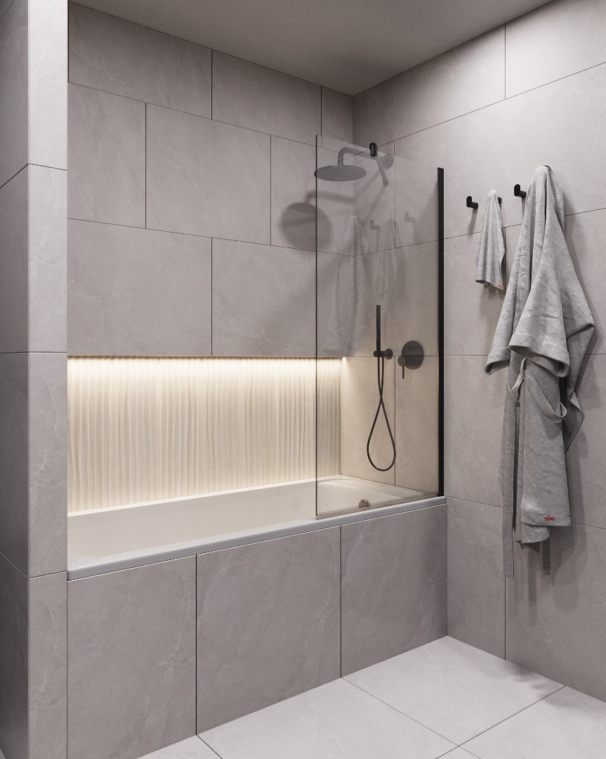 - Стеклянные шторки для ванны обладают привлекательным внешним видом и могут стать ярким акцентом в интерьере.