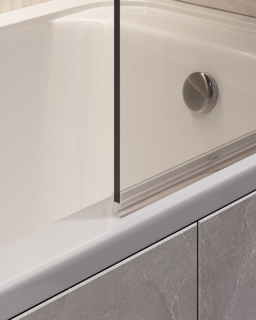 - Уплотнитель обеспечивает надёжную защиту от брызг, сохраняя при этом эстетичный вид шторки.