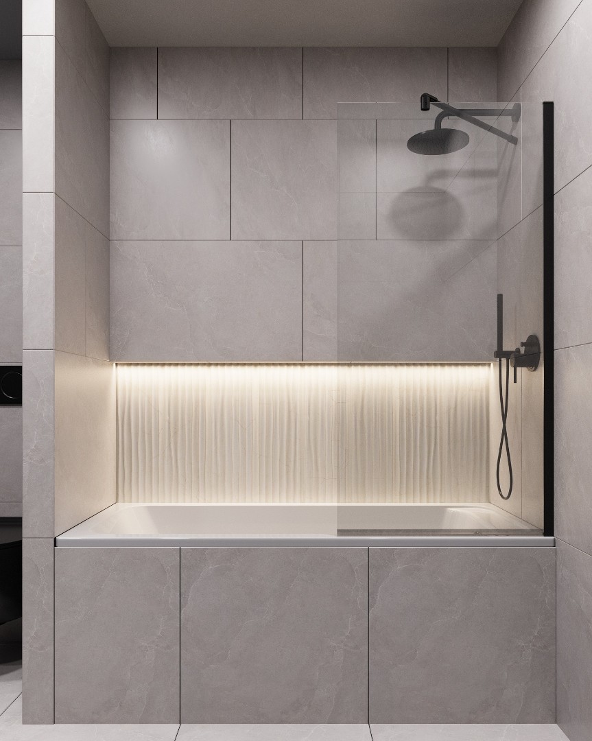 - Уплотнитель обеспечивает надёжную защиту от брызг, сохраняя при этом эстетичный вид шторки.