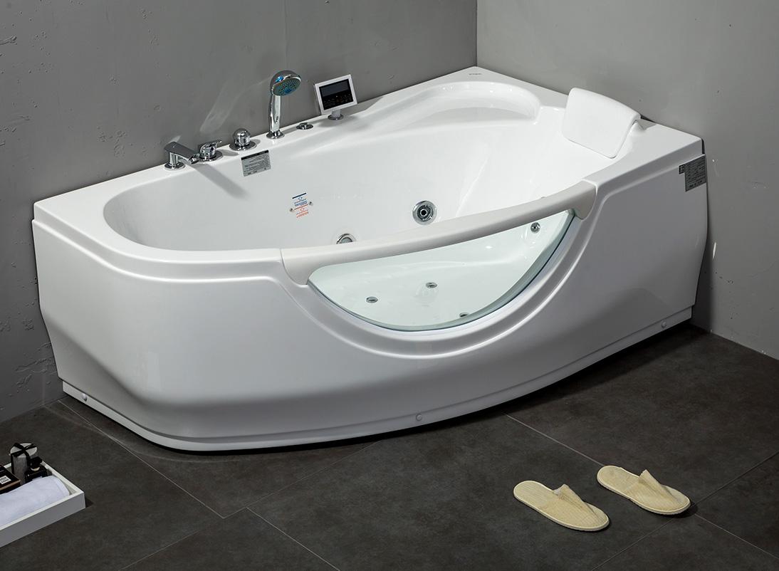 В комплекте: каркас, смеситель с изливом, душевая лейка, подголовник, слив-перелив, гидромассаж (10 форсунок), аэромассаж (8 форсунок), регулировка интенсивности массажа, хромотерапия, озонирование, защита от сухого пуска, радио, сенсорный Smart TV 12", пульт ДУ.