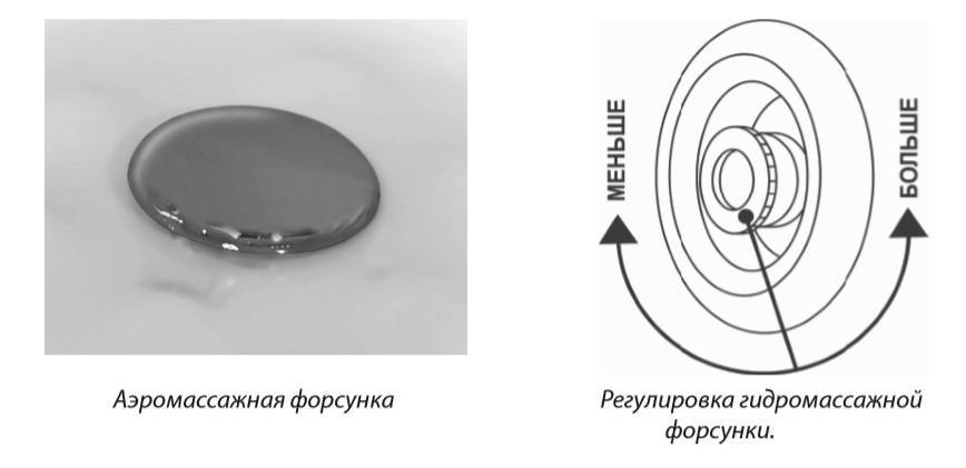 - Ванна с гидромассажем (6 форсунок), спинным массажем (4 форсунки), краном-переключателем;