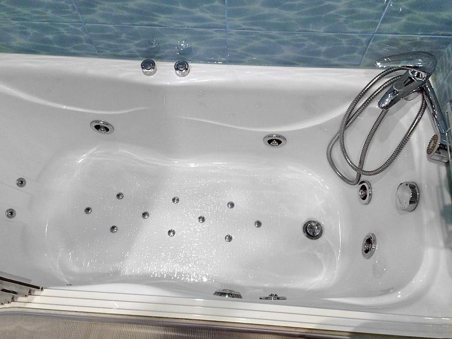 - Ванна с гидромассажем (6 форсунок), спинным массажем (4 форсунки), аэромассажем (10 форсунок), краном-переключателем;