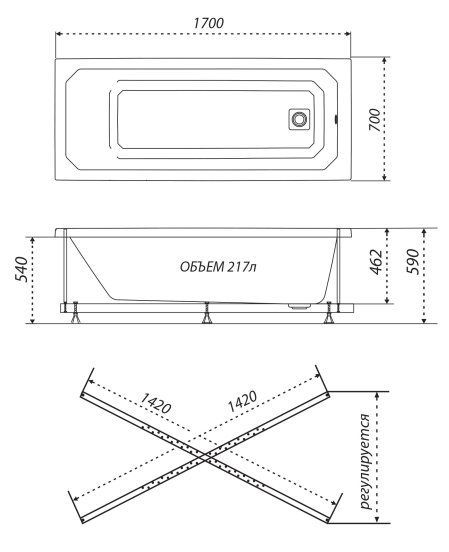 Для облегчения монтажа ванны в ограниченном пространстве ванной комнаты и в соответствии с ТУ, размеры изделия могут отличаться по габаритной длине: -1%+0,2%, по габаритной ширине: -2%+0,2%.