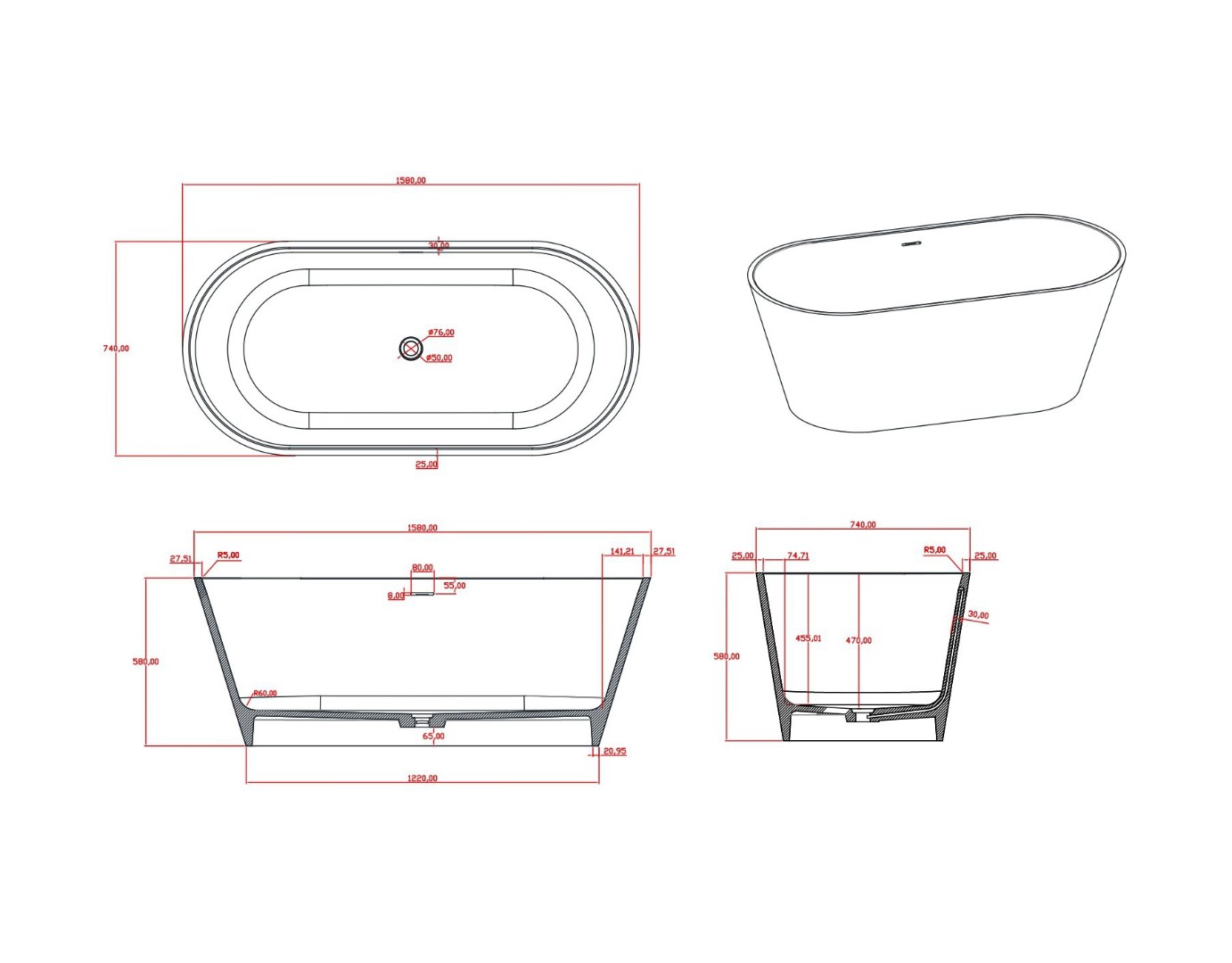 Ванна из искусственного камня Timo solid ELISSA1580 158x74 белый матовый