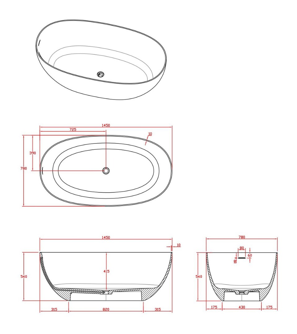 Ванна из искусственного камня Timo solid SATU1450 145x78 белый матовый