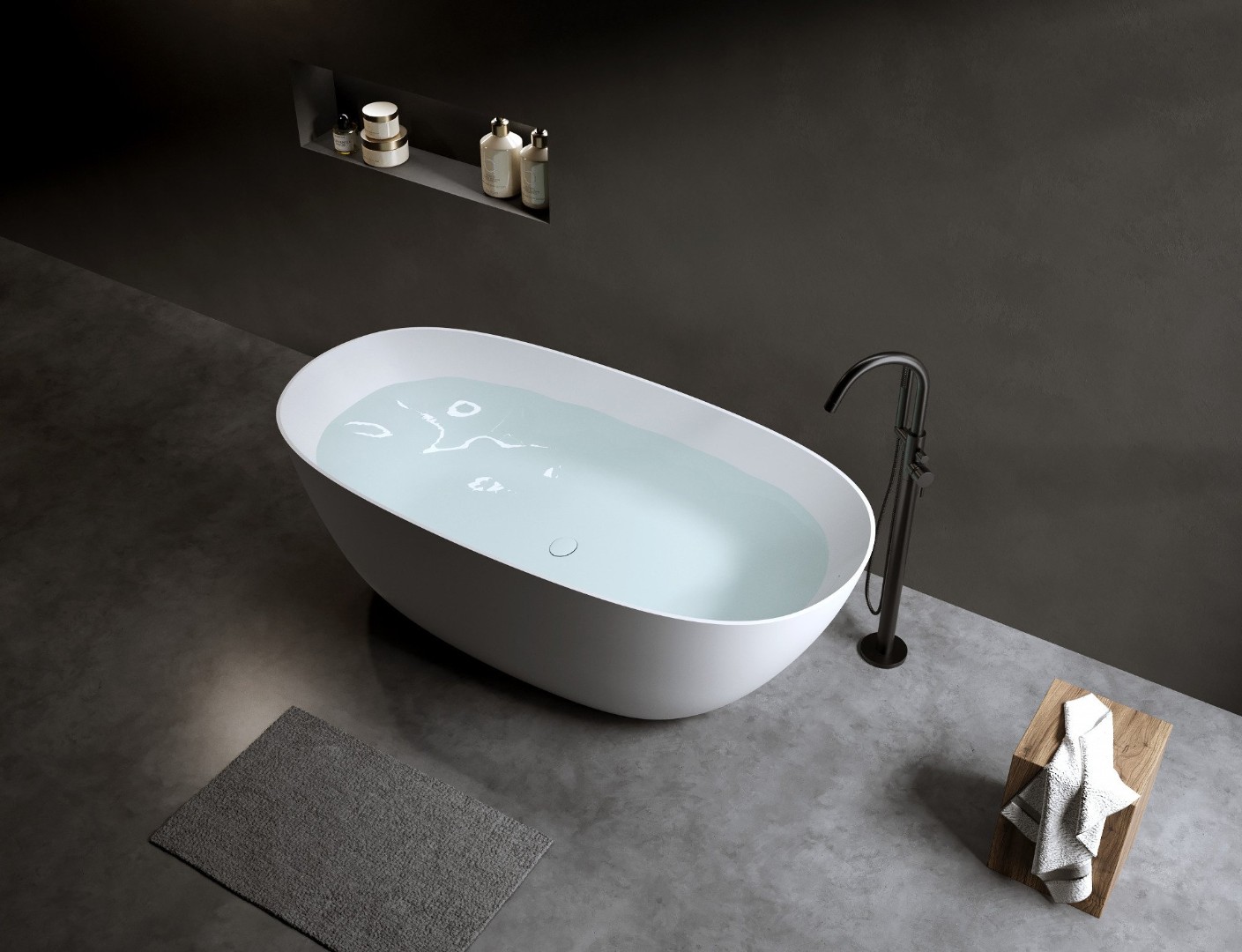 Поверхность ванны приятная на ощупь и не холодная благодаря низкому уровню теплопроводности, что делает процесс эксплуатации очень приятным. Отсутствие шума от струи воды - ещё одно преимущество таких ванн.