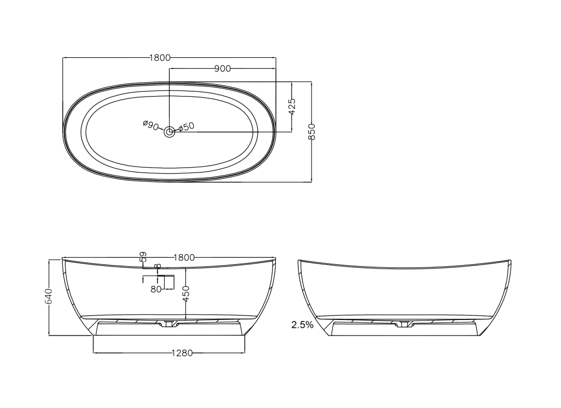Ванна из искусственного камня ABBER Stein AS9615-1.8 180х85