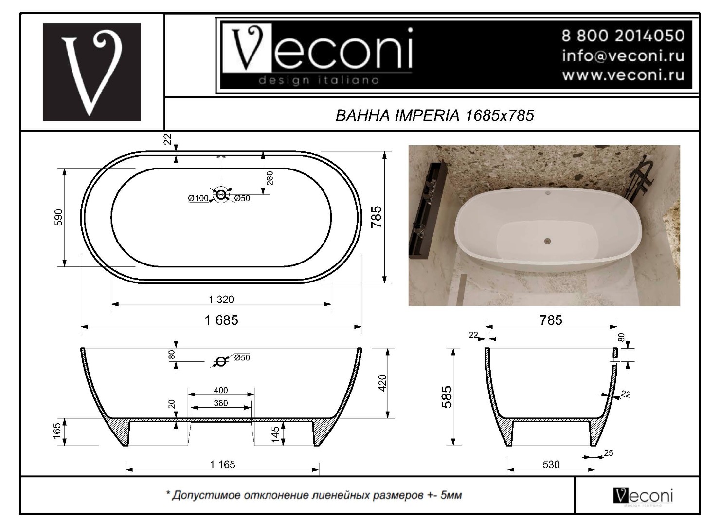- Ванны Veconi поддаются ремонту и полировке без высоких затрат и усилий, в отличии от эмалированной поверхности или ABS пластика.