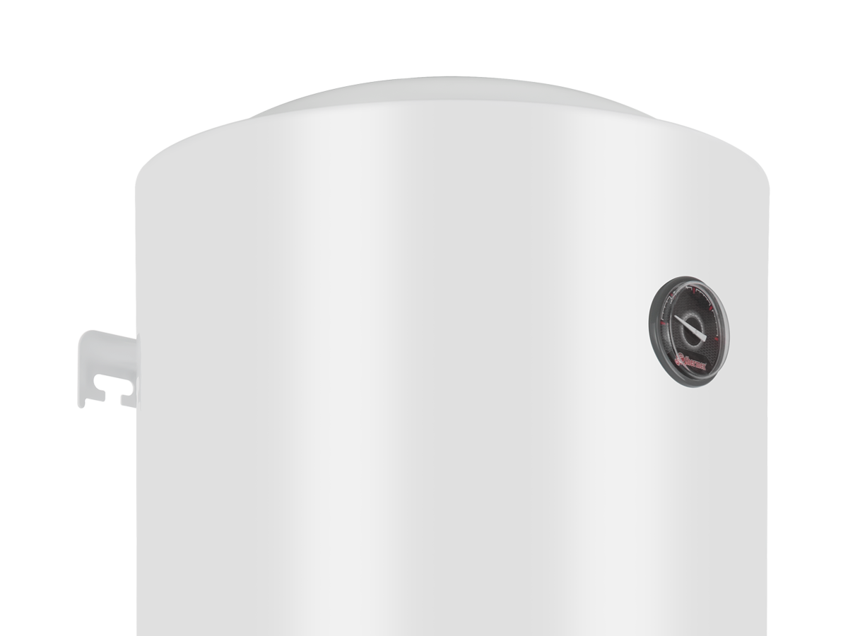 - На фасадной части корпуса расположены: механический датчик температуры нагрева воды со светодиодом сигнализации включения ТЭНа в работу, стрелочный указатель температуры воды в режиме online;